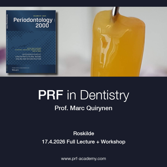 Heldagskursus med Prof Marc Quirynen omhandlende brugen af PRF indenfor hårdt væv og blødt væv opbygninger, socket preservation og det videnskabelige grundlag for brugen af PRF. Der indgår også en workshop med hands-on.