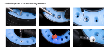 Med Cervico Guide placerer du dit implantat korrekt og identificere den optimale størrelse og form for det patient specifikke Cervico heling abutment, der efterfølgende fremstilles via Cervico Essential eller Premium mold på få minutter.