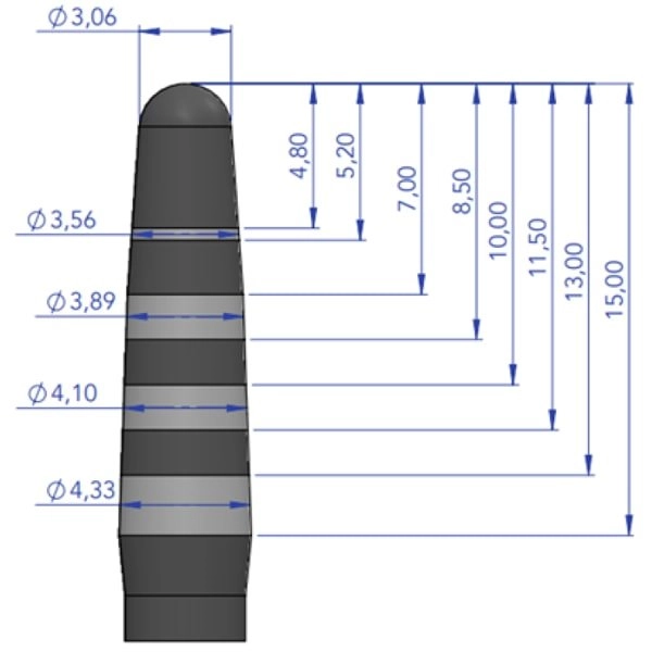 Black Ruby is a special series of Osteotom made from black surgical steel. Made for the Magnetic Mallet. See the laser markings for easy identification of depth and width dimensions.
