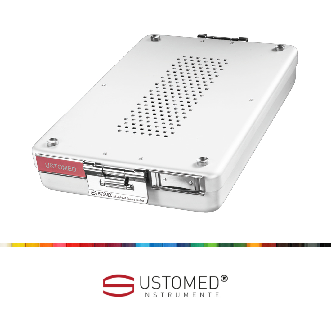 Ustomed’s sterile container solutions enable conversion from waste-heavy, time-consuming and expensive packaging to long-lasting cassette systems that ensure that the contents remain sterile for up to 9 months – without being wrapped at all. With Ustomed’s sterile container, you avoid ordering, storing and disposing of autoclave bags. You save time and money, and at the same time help support the green transition! The sterile and bagless container from Ustomed is available in several different sizes and variants – choose from: